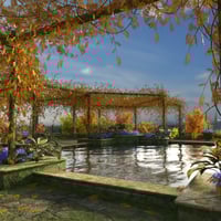 Let your figures walk under a cloud of pastel-colored flowers in spring or under a roof of golden leaves in fall, or let them have fun in the snow.This pack allows you to turn the Romantic Pool default summer look into spring, fall or winter.