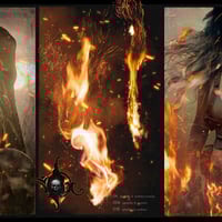 I bring large already made background overlays in Photoshop and simply turn them to screen mode. Rotate, enlarge do what you like, also these flaming sparks and embers are in PNG format that can easily be dragged and dropped. They are all numbered and I gave you a .PDF so you can view or scroll through to find the perfect one. As always I have provided you with some custom made Photoshop Brushes and layer styles. Add a blank layer, add a style, get a brush and experiment and have fun.