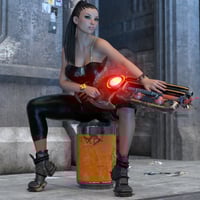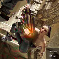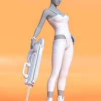The Rox Elite Outfit's Agitator Rifle is rigged via control morphs for easy grapple controls. The boots, suit, bra, and pants are loaded with adjustment morphs