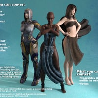 RiverSoft Art and Sickleyield are proud to present the RSSY Clothing Converter from Genesis 2 Female to Genesis 8 Female! Finally, use your Genesis 2 Female clothing with your Genesis 8 Female characters! Automatically convert your entire wardrobe of clothes, including high-heels, using the new RSSY Clothing Converter script! The RSSY Clothing Converter from Genesis 2 Female to Genesis 8 Female has been carefully crafted to handle the different rigging and shapes between Genesis 2 Female and Genesis 8 Female, even adding special rigs for loincloths (including dresses like Nyx!),coats, capes and a special dress rig that adds pose bones to avoid that "sticking to the legs" effect.