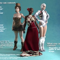 RiverSoft Art and Sickleyield are proud to present the RSSY Clothing Converter from Genesis to Genesis 8 Female! Finally, use your Genesis clothing with your Genesis 8 Female characters! Automatically convert your entire wardrobe of clothes, including high-heels, using the new RSSY Clothing Converter script! The RSSY Clothing Converter from Genesis to Genesis 8 Female has been carefully crafted to handle the different rigging and shapes between Genesis and Genesis 8 Female, even adding special rigs for loincloths, capes and a special dress/tunic rig that adds pose bones to avoid that "sticking to the legs" effect.