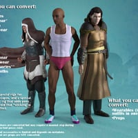 - Convert Dresses/Tunics, Pants, Shirts, Skirts, Shoes, Loincloths, Capes, Coats etc.