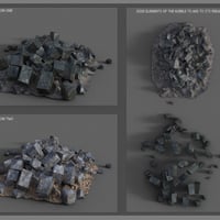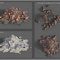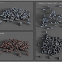 A set of 10 Static Rubble Props, complete with 2 texture sets for each Prop. A selection of Bricks, Marble, Millstones, and Generic Rocks are included. Complete with dirt and grime.