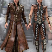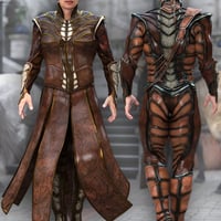 This highly versatile multi piece outfit can be used in fantasy, modern or sci fi renders. It comes with a variety of items which can be mixed and matched to achieve an intricate layered style with up to three layers of clothing on top of each other.