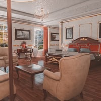 Modeled after the ornate style of the contemporary Russian upper middle class, the Russian Bedroom has a detailed interior and has everything your characters need to relax in comfort after work.