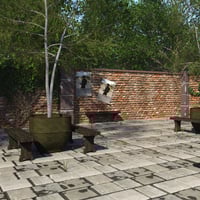 Your characters will enjoy this charming courtyard with a unique look. This Rustic Place is an excellent setting for various scenes, such as a quaint village, renovation, zombie apocalypse, or something all your own.