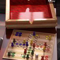 With this set comes a wonderful handcrafted game box with a colorful Pachisi board, figures and dice.