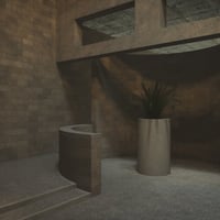 Ryham is based on a modern church, exemplifying brutalist architecture.It stands as a striking testament to utilitarian design, characterized by its imposing brickwork columns and robust walls that convey a sense of strength and permanence.