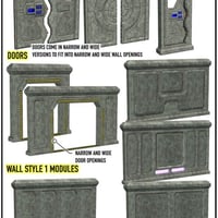 - Wall Style 1 (six wall modules, 1 with wide door opening, 1 with narrow door opening, 1 with light panel)