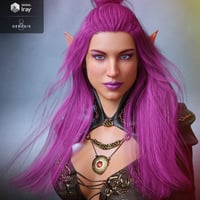 MORPHING FEATURES: The hair also includes 112 custom morphs, in these 12 categories: All Back, Back Adjust, Chest Adjust, Elf Ears, Ends Move, Face Adjust, Hairline, Head Adjust, Move, Shoulders Adjust, Style, and Wind. You can put the hair all back on one or both sides, adjust it to most elven or creature ears, move each part in any direction, or move only the ends, adjust it to face features, set the hairline higher or lower, give it more volume, make the back or each side longer, shorter or wider, make each part more pointed, raise the center part, make the bun bigger or smaller, and blow it with wind in different ways, moving each part independently with the wind, or using the morphs that blow it all at once.