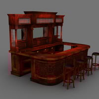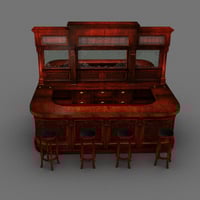 Ornate Saloon style Bar and Stools complete with opaque lead glass and back mirrors. Ideal for use in a western era scene or in any time period after where there is an ornate bar required.