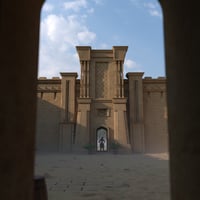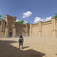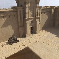 Add to the scale of your desert castle scenes with this imposing walled set.