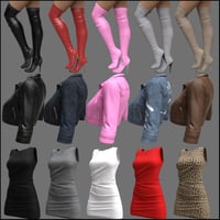 This flirtatious outfit comes with a Dress, Jacket, and Boots. Each piece comes with 5 High-Quality Iray MAT Options, PLUS 1 customizable MAT each for the Jacket and the dress, and 2 customizable MATs for the Boots. Allowing you to change the color of each material zone of each piece by simply changing the Base Color in the Surfaces Tab. This means you can match the clothing to your taste and needs while utilizing the highly detailed accompanying maps included.