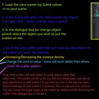 So whether you just want a set of ultra low res ivy plants to use and scatter on your own or a set of tools to help you scatter it using ultra scatter 2, this bundle will help you. Some experiance with ultra scatter 2 and a willingness to experiment will an advantage.