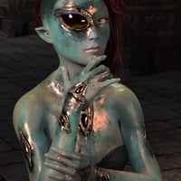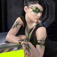 This set gives you lots of options for a variety of different looks. Choose between two versions of armlets and wristlets, use the implant preset to embed the ornaments in the figure's skin, load a geoshell to add metallic overlays for the skin, or apply matching nail polish.