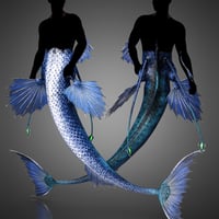 It comes with the main tail and built-in hip fins, matching scale parts for front and back of tail and torso, a variety of fin attachments for the tail and Genesis 8.1 Male, geografted morphing gills, and a geoshell for seamless blending between the tail and humanoid body.