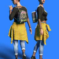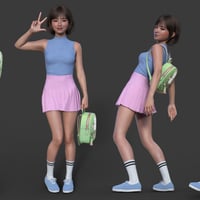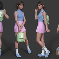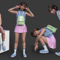 A backpack with cute prints, embroidery, and delicate colors. Compact and comfortable, it is ideal for daily walks and studying. A set of poses will help you with your use. The backpack and all Poses have been adjusted for Genesis 9, Genesis 8, 8.1 Female. You can also use this backpack with other poses by adjusting the morphs as I did in some promo renders.