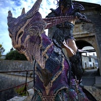 This creature kit features an expert crafted topology and uv's allowing for amazing levels of detail in both the creature's sculpt and textures, rigging as detailed as the creature itself for maximum posability, poses for out of the box usefulness, an innovative setup for the highly detailed yet fully optional head tentacles, and uniquely designed saddle to compliment the creature's design and offer an infinite number of options for the creature as a mount. In that same thought, also included are bonus poses for the Genesis 8 Male and Genesis 8 Female figures, allowing virtually any of your G8 based characters or creatures to take their place as the rider, with only modest adjustments needed in the more extreme cases.