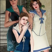 Get Victoria 4, Aiko 4, Victoria Elite, and the Girl 4 into this fun outfit full of vintage charm. Dress your girls in a laced-up pencil skirt, a halterneck corset with the typical sailor's collar, and a sailor's beret. Use each of the four included texture sets and the visibility and length options to create a variety of different looks.