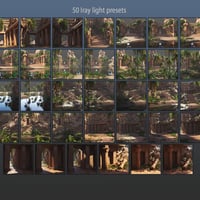 The pack also contains 18 cameras, light presets for each camera (50 in total) and several presets for render settings.