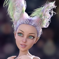 This conforming wig has just enough dForce surface to aid in collision without losing its shape, but it will not drape in response to gravity, giving you a one-of-a-kind hairstyle for your library.