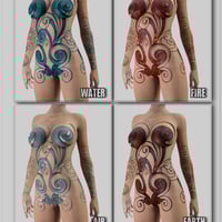 4 Styles of Second Skin Torso Body Jewel Outfits in 4 color options each (earth, air, fire and water)