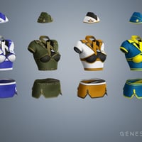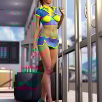 4 Texture Sets for Sexy Stewardess: Blue on White, Camo, Orange on White, Yellow on Blue.
