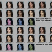 Here you'll find not only basic presets to apply the shader and normal maps, but detailed presets to apply many tints and shades of skin, whether light or dark or alien. After many customer requests, this set also supports the female genitalia that come with Victoria 8! Even if you want to use the normal and translucency maps a character came with instead, there are mapless presets that only use shader settings, too. Every Genesis 8 Female character can benefit from these settings. It's time for Beautiful Skin!