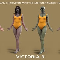 SG Reanimated Monster HD is a detailed character sculpted at SubD level 4. It is more than just a character, however. It contains skin options, shapes, and neck bolts, plus a script for turning your own characters into a reanimated monster!