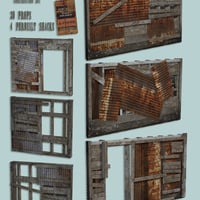 Preset buildings are included to help you quickly establish a 3D model community. One pre-set pre-build, complete with ground prop, means you can build from scratch or jump right in with a single click. Features include four buildings, a burn barrel, cloth, corrugated panel, dirt ground, chain link fence, two flats, open frame, overhang, pallet, power pole, two razor wire, two roofs, one short door, three short walls, short window, sign, tire, three long walls and a wood fence.