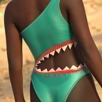 A fun, cheeky swimsuit featuring a shark smile. Complete with additional shell designs to add sequins, blood details, and other metallic designs. 07 Base materials for the swimsuit are included. Mix and match all options for extra versatility.