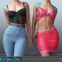 Show some skin in the Sheer Delight Outfit for Genesis 9. Includes: Dress, Earrings, Panty, Shoes, and Sleeves, Plus 5 full texture presets for each piece and lots of utility options for fabrics and other customizations.