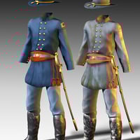 Shenandoah: Officer for Genesis is a complete clothing set for DAZ´s Genesis. The uniforms have textures for both north and south from The American Civil War (1861–1865). An Officer to lead your troops into battle. There are texture sets for clean and dirty uniforms. Character and beard not included.
