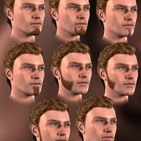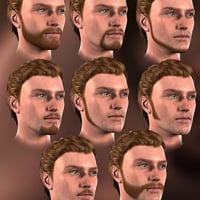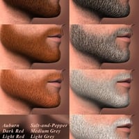 The set includes fourteen beard colors, from black to white and everything in between, as well as thirty-four styles. Shader presets make it simple to change the color and style independently of each other, so that you can easily find the right combination of color and style to 'go' with your character-- whether it's a young guy proudly sporting his 'chinstrap' beard, a guy on vacation who hasn't shaved for a week, a debonaire fellow emulating Clark Gable, an old fellow with a white 'circle' beard, or... whatever.