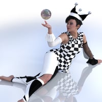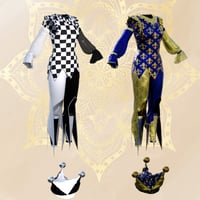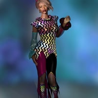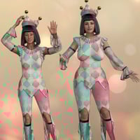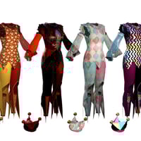 The Sisters in Chaos are delighted to offer the dForce Harlo Set. Harlo is a more masculine Harlequin outfit, suited to unisex mischief and mayhem as our dear Genesis requires. Harlo consists of a pointy hemmed top with a ruffled collar, an adorable hat, pants with extravagant points, sleeves, and footless stockings.