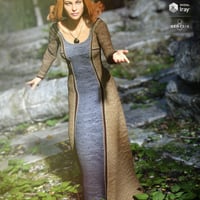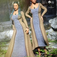 This elegant 3D dress was inspired by Viking styles and includes the lovely dress filled with movement and shape morphs, a matching necklace and a set of flower props for the left and right side of the head.