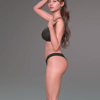 Her skin is crafted with the PBRSkin shader, featuring an asymmetric body HD morph for the head and body, an iris depth morph, and a custom sculpted lip HD detail as a separate morph.