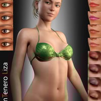 Liza is a custom sculpted, playful character for Genesis 3 Female. Her face and body are subtly stylized to compliment your poses and renders. Liza includes 5 eye colors, and 4 additional lip and makeup options, all utilizing the base Genesis 3 Female UVs.