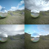 Each of the HDRI skies were captured with 17+ exposure values of brightness for accurate lighting. Ranging from brooding cloudy skies to clear sunny days and beyond sunset, you'll find a wide variety of moods to play with. All of the included HDRI maps come with presets for both "Infinite Dome" and "Finite Dome w/ Ground" to help users switch between rendering methods (which can be useful for adjusting to your scene scale or style).