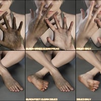 Skin Effects: Dirt elements includes several specific dirts and a series of dirty handprints. While it was designed as an add-on to the main "Dirt" package, it actually works both on its own and in combination with Skin Effects: Dirt and is compatible with any Genesis 8 Female and Genesis 3 Female based character. The dirts are applied on a Geoshell which allows us to deliver the most realistic result as all the dirts are PBR.