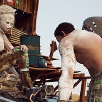 In the wasteland, desert dwellers cover themselves in clay for both mystical and decorative purposes. The material is readily available, quick to prepare for application, and can easily be customized with pigments for a more unique look.
