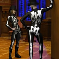 Whether headed out to a Halloween party or for some late night larceny, all the Millennium 4 figures look sharp wearing this rolled brim top hat and skeleton bodysuit costume.