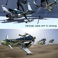 The Skyjet is a personal flying vehicle. The package consists of the 3d vehicle, the sky-helmet and 3 different sets of textures (MAT poses) for the ship and for the helmet.