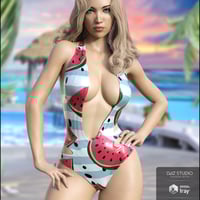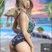 The Slash Swimsuit is a high quality modern swimsuit for Genesis 8 Female(s). Included are 06 fun beachy print textures and 08 solid color swimsuit textures. The solid color textures can be modified by changing the diffuse color to create any color or look you desire!