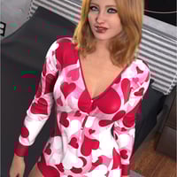 - Sleepover Romper Short - 02 Red & Pink Love Print
