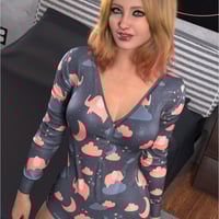 - Sleepover Romper Long - 04 Grey & Pink Valentine Print