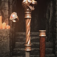 Three Intricate Props – A wolf-headed cane that transforms into a hidden stiletto, a gold ring set with a blood-red ruby, and a refined sheath element integrated into the design for storytelling versatility.