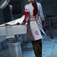 Slightly Mad is a set of two textures for the Mad Doctor for Genesis 3D outfit. Is your doc a murderous surgeon, or a heroic army doctor in the field?
