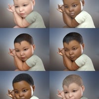 Small World Baby Locks Hair for Genesis 8 and Genesis 3 Male(s) and Female(s) is a versatile short realistic style that will suit babies and adults alike. This hair comes with seven style presets and five color options optimized for both Iray and 3Delight.