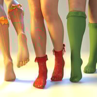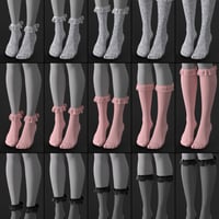 Featuring five wearable socks with different lengths. Three texture sets - cotton fabric, lace and fishnets, were used in 36 carefully crafted material presets. Also includes partial material presets to switch ruffle and cuff texture sets separately.